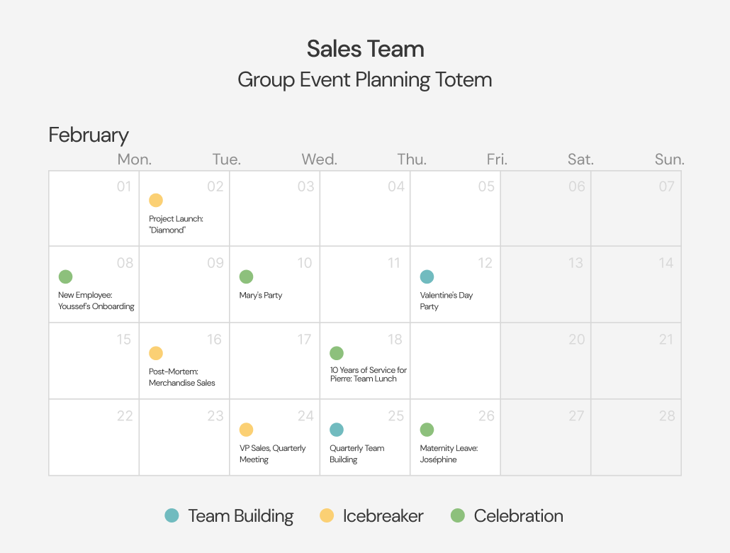 In addition to your annual group-building activities, you can easily create a culture of appreciation by multiplying moments of recognition and kindness. You can, for example, create a Celebration event for an employee celebrating a birthday or joining a team, or an Icebreaker activity for spontaneous exchanges before a meeting.